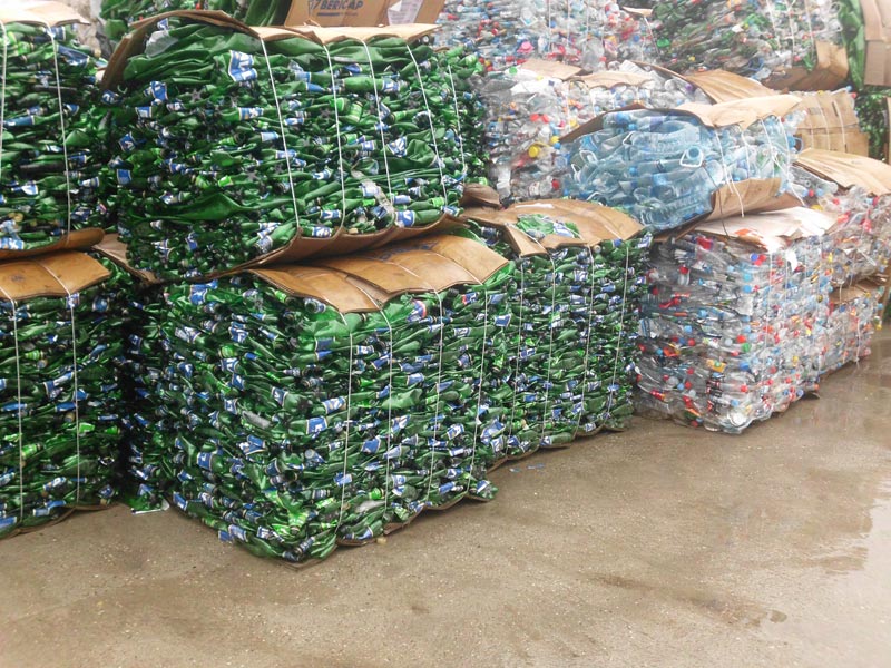 The collected recyclable materials are separated according to species, then baled and thus ready for further recycling stream.